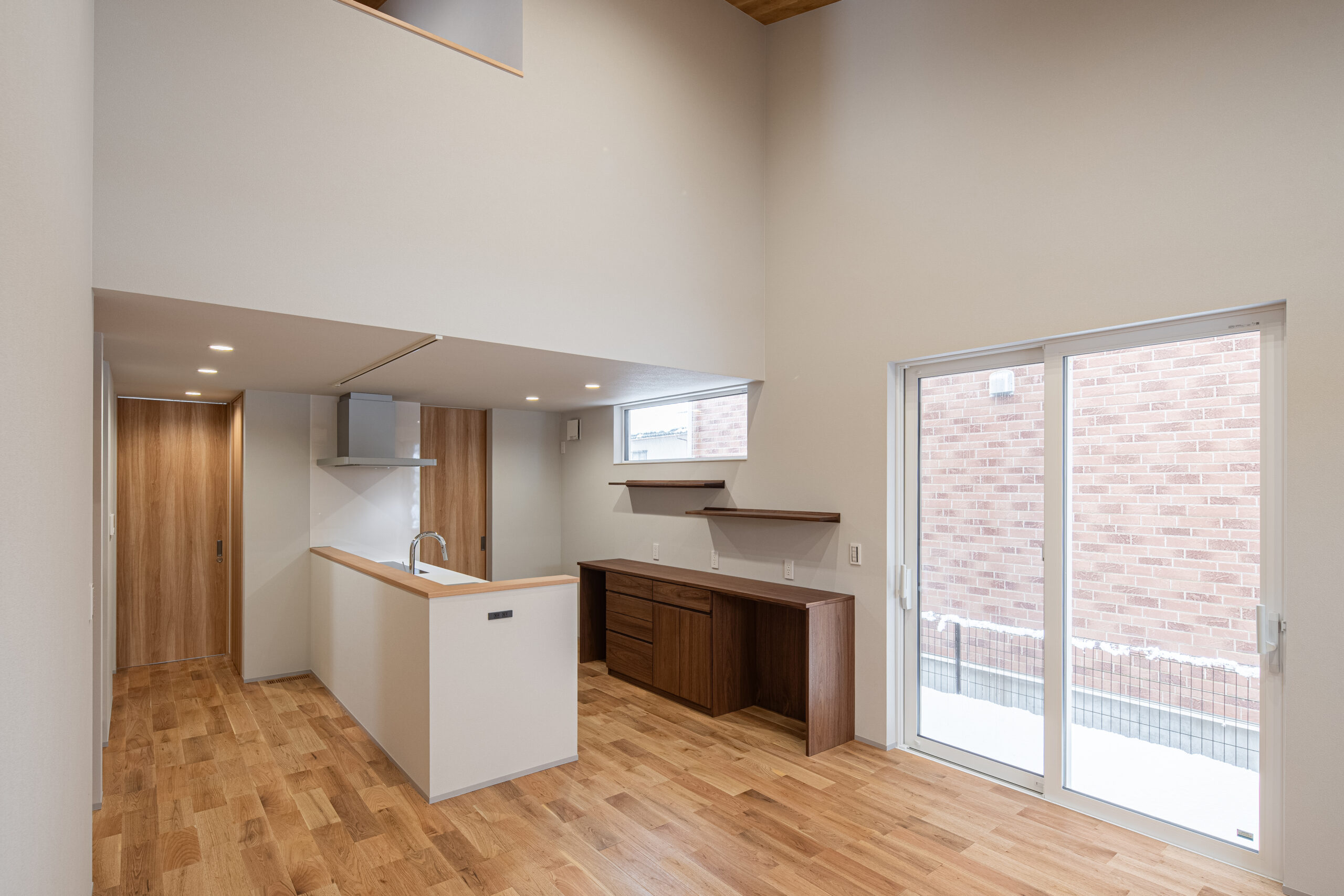 家族が自然と集まる、開放感あるリビングダイニング。