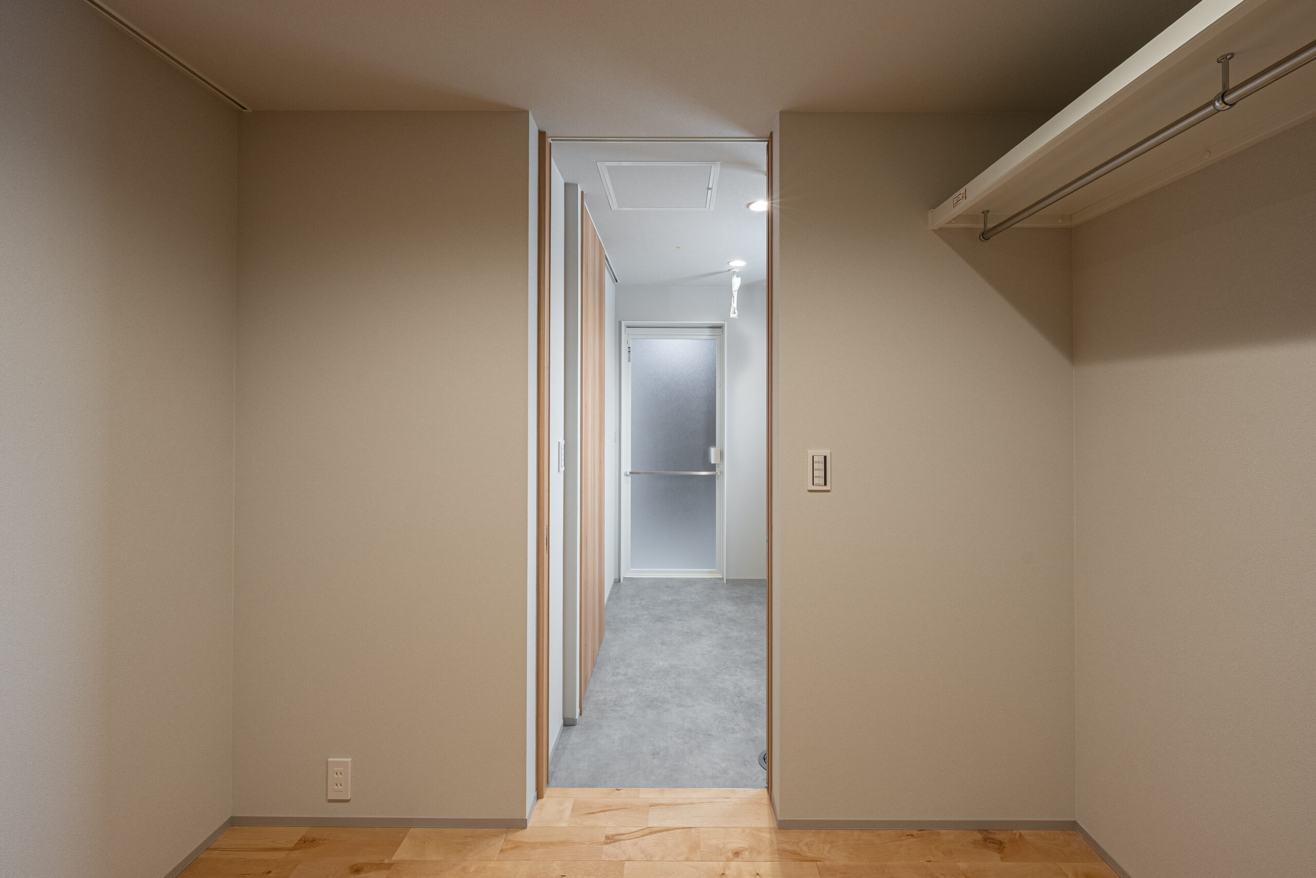 洗面室からそのままつながるウォークインクローゼット。
