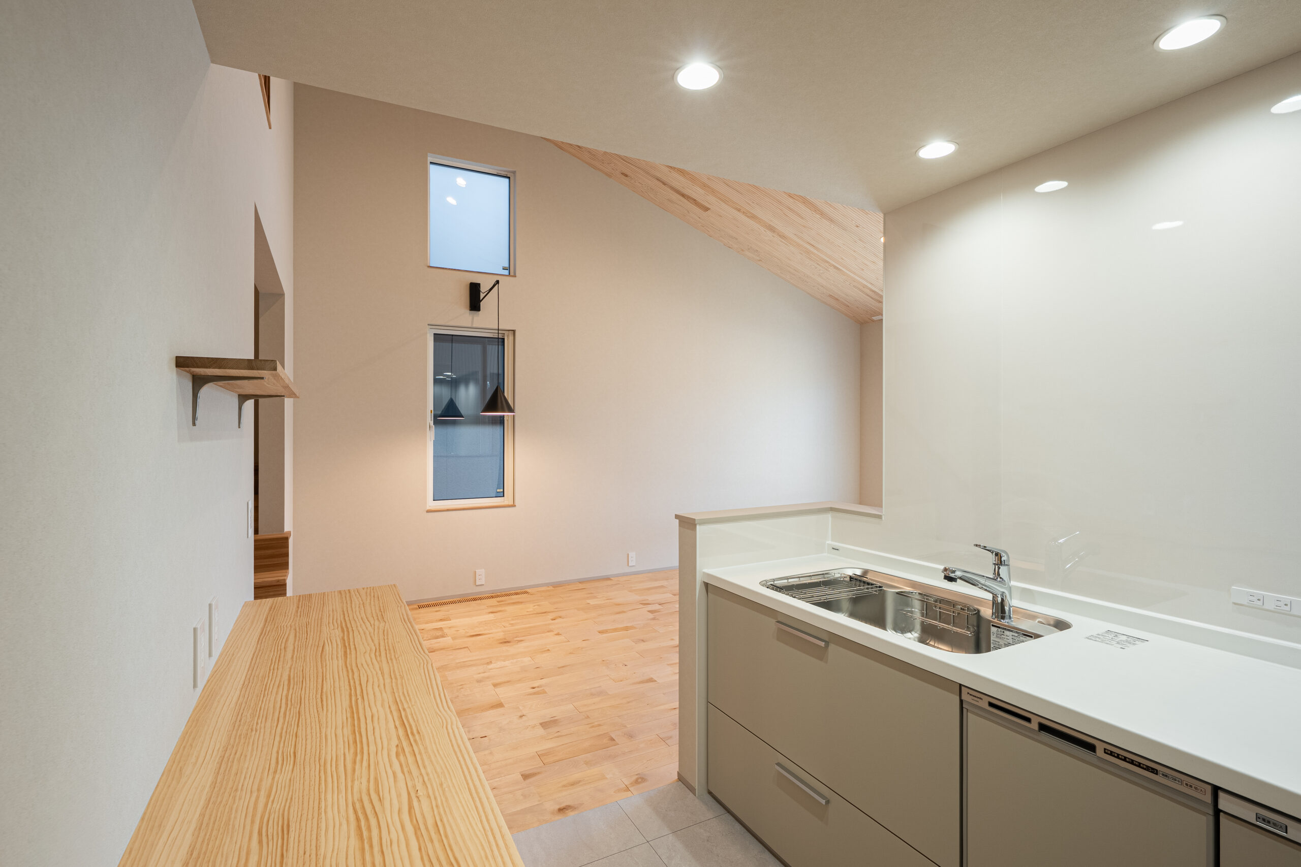 収納やカウンターを設けることで、すっきりとした暮らしを支えます。