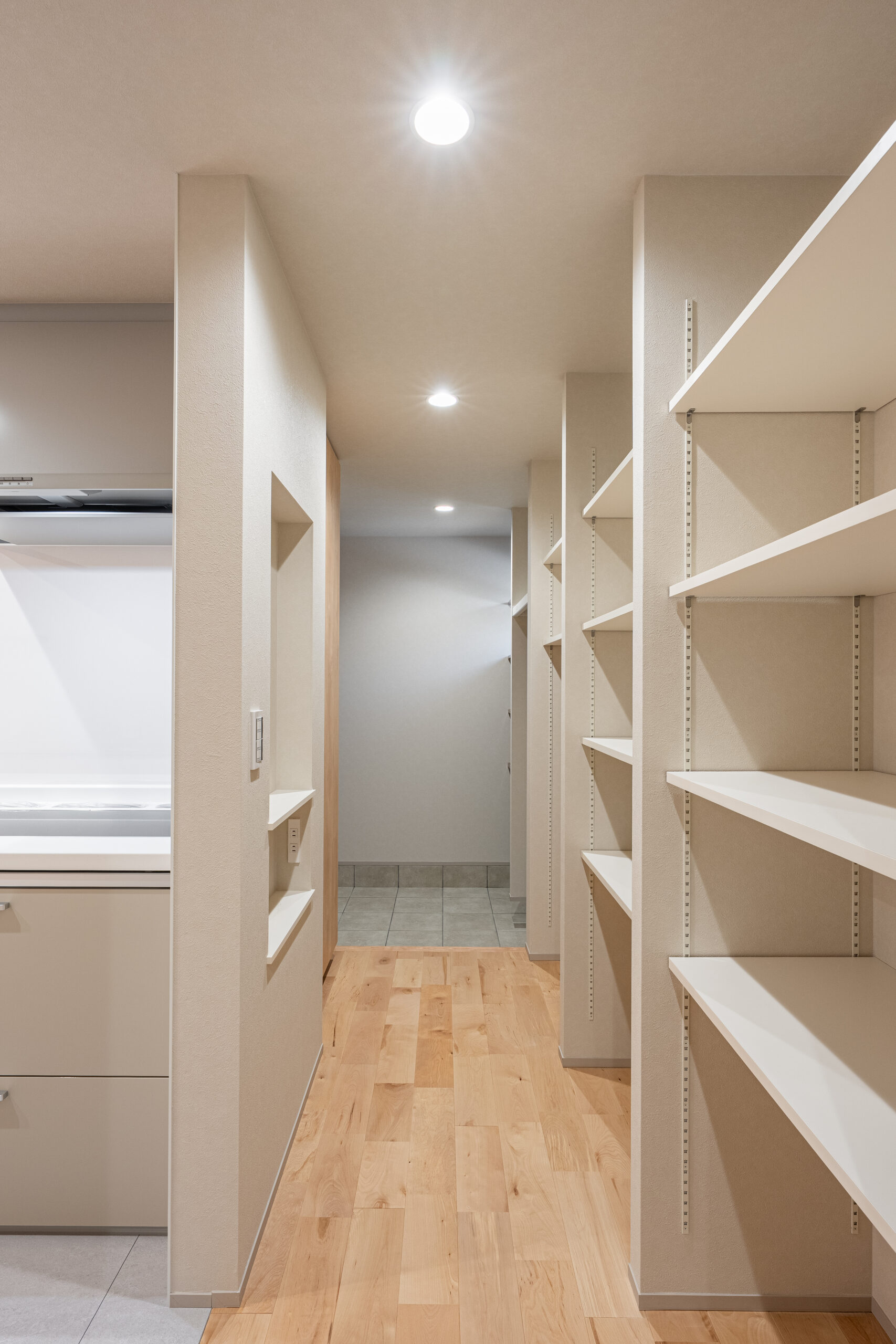 キッチン奥に設けたパントリーは、玄関からもつながる便利な動線。暮らしのしやすさにつながります。