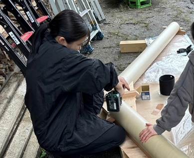 エツサスへ入社する前は専門学校の建築科でインテリアや建築の基礎について学びながら、地域の子供たちとツリーハウスを製作する取り組みや仮設工房建設などのボランティア活動にも取り組んでいました。